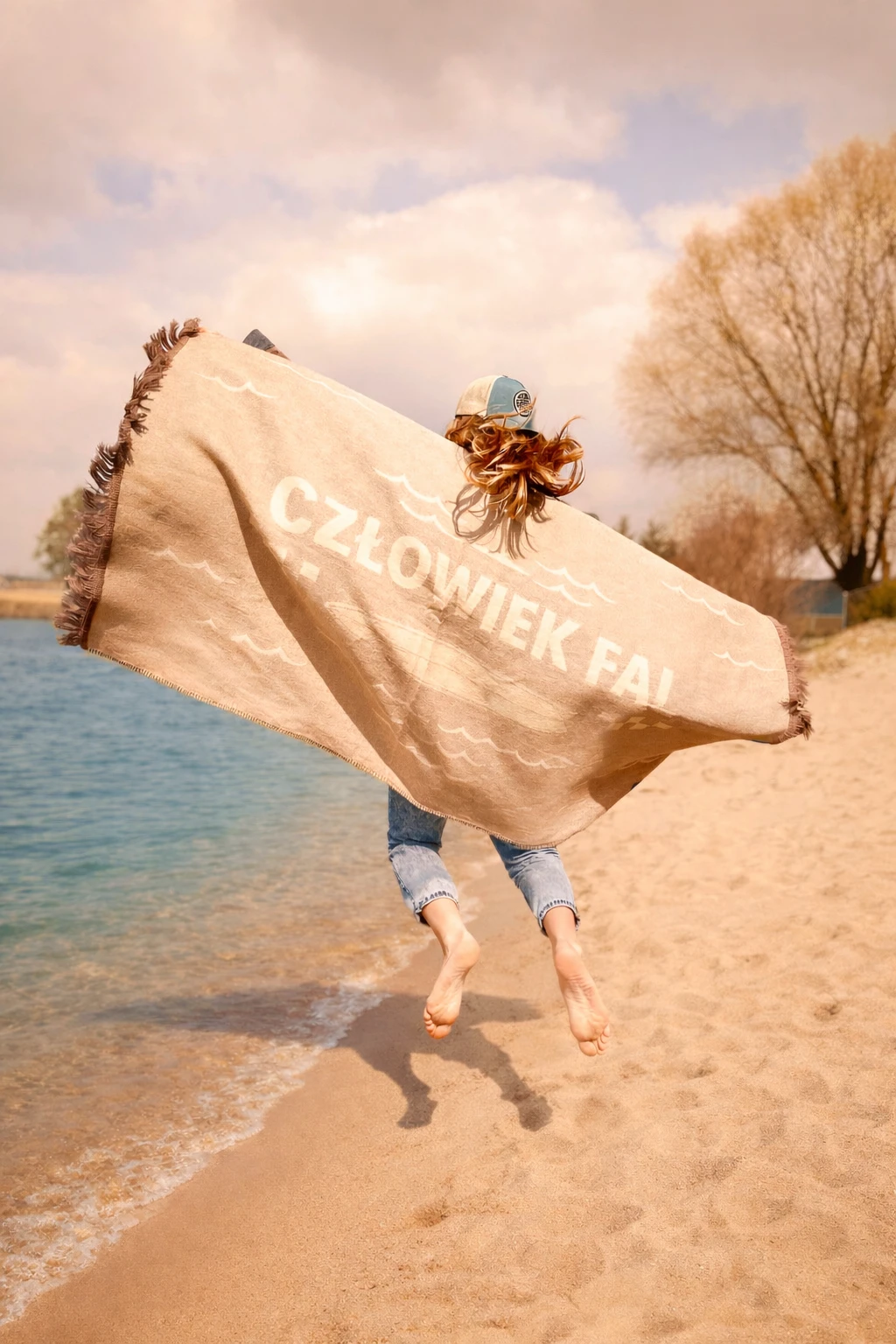 Mata plażowa M- CZŁOWIEK FAL beżowa